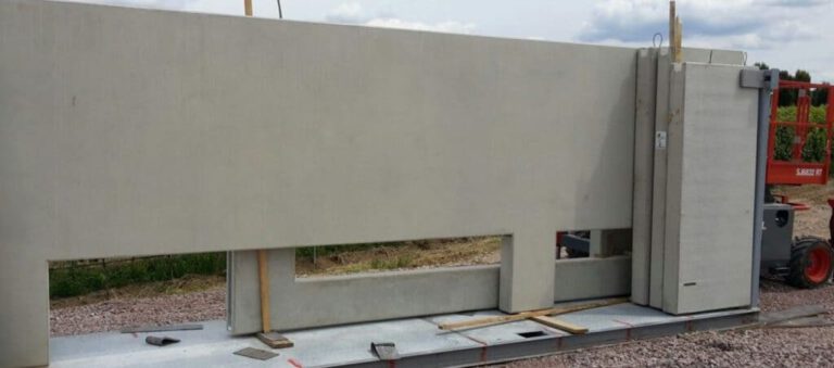 Elementwände sind vorgefertigte Wand-Systeme aus Stahlbeton, die exakt nach Ihren Plänen gefertigt und fertig zur Montage auf die Baustelle geliefert werden. Aussparungen für Fenster, Türen, Elektro- und Sanitärinstallationen sind bereits eingebracht — auf der Baustelle wird nur noch montiert.