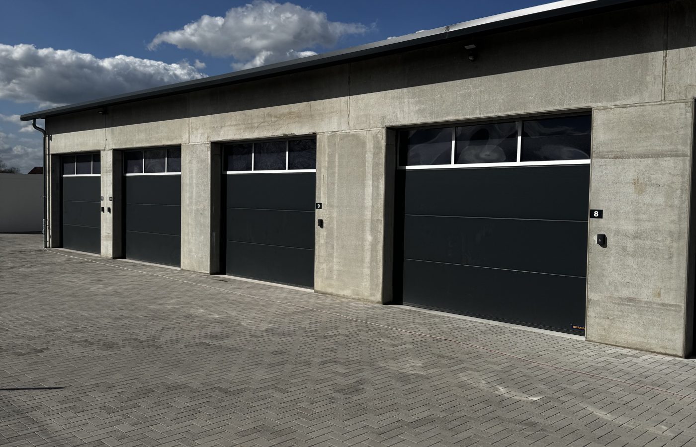 Realisierung eines Garagenparks in Landstuhl aus einzelnen Betonfertigteilen — von uns geliefert und versetzt, inklusive Herstellung der Bodenplatte.